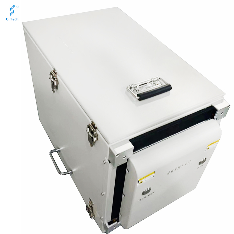 ST-SA3054 providing shielding capabilities up to 12 GHz. The size of the ST-SA3054 is a popular choice for performing RF testing on small wireless and mobile devices. In addition to shielding traditional 2.5 GHz technologies like WIFI, Zigbee, and Bluetooth, this shield box supports a range of up to 12 GHz to enable testing on forward-looking technologies such as 5G, UWB, and WIFI 6E variants. The box can be operated remotely via remote control, while additional features like the dual pressure control lid and sensor ensure enhanced user safety.