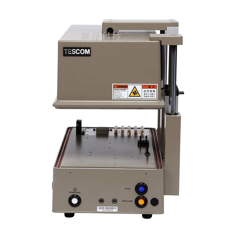 Pneumatic control of lid open-close and optional automatic test fixture motions