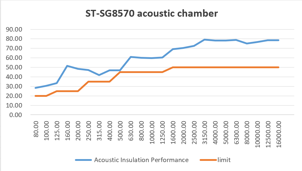隔音方案:A 計權聲壓級:外界 80 分貝,背景噪聲<30 分貝